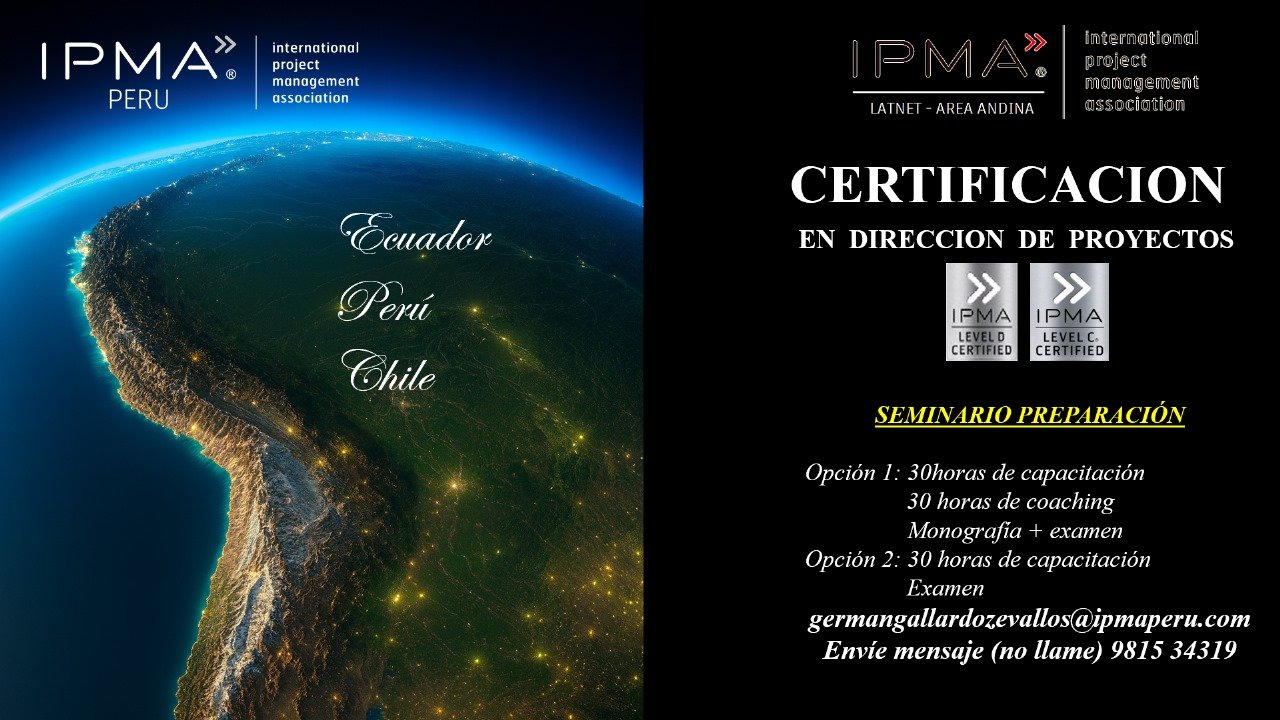 Si bien IPMA en el Perú es relativamente joven, y recientemente las empresas mineras y demás están integrando IPMA dentro de sus prácticas de dirección de proyectos, a futuro IPMA será un requerimiento necesario dentro del perfil de los directores de proyectos exitosos.”